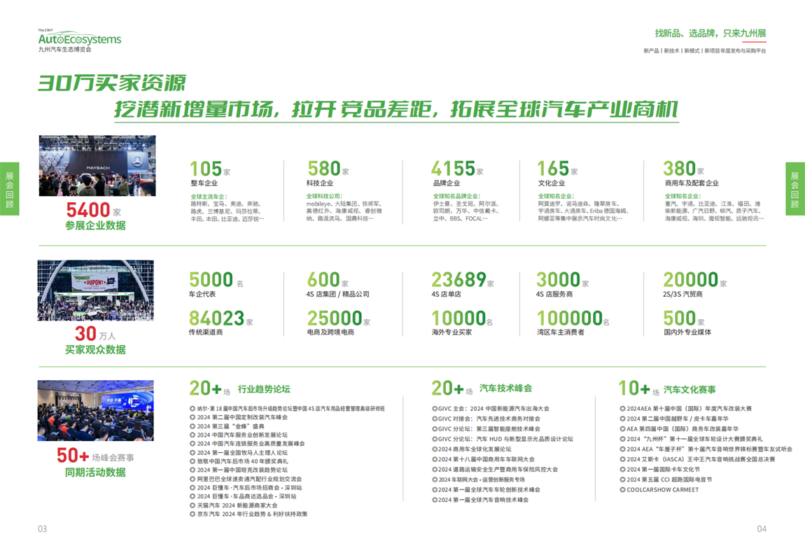 此次盛会汇聚了超过30万人次的高质量买家群体,他们来自企业设计、生产、采购、销售等关键部门的精英管理者,代表着行业最前沿的需求与趋势。展会期间,超过50场精心策划的汽车科技前沿峰会、行业趋势深度论坛及丰富多彩的汽车文化活动将轮番上演,旨在为参会者提供把握行业脉搏、洞悉市场趋势、甄选年度爆品的绝佳契机。同时,这也将是一场汇聚年度科技新品发布、品牌风采展示及交流合作于一体的行业盛宴,为业界带来前所未有的交流与合作的平台。