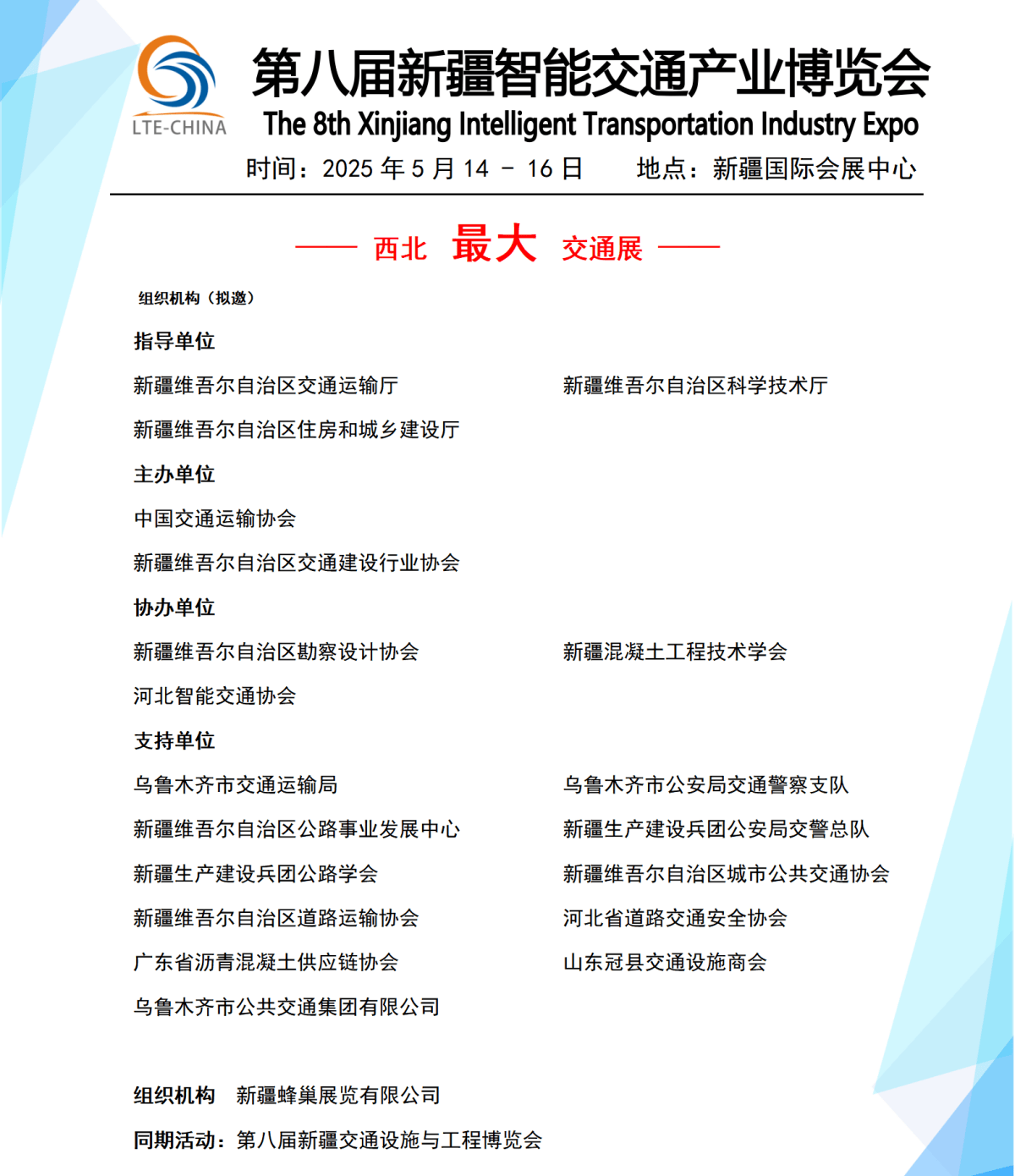 第八届新疆交通设施与工程博览会- 举办时间:2025年5月14-16日