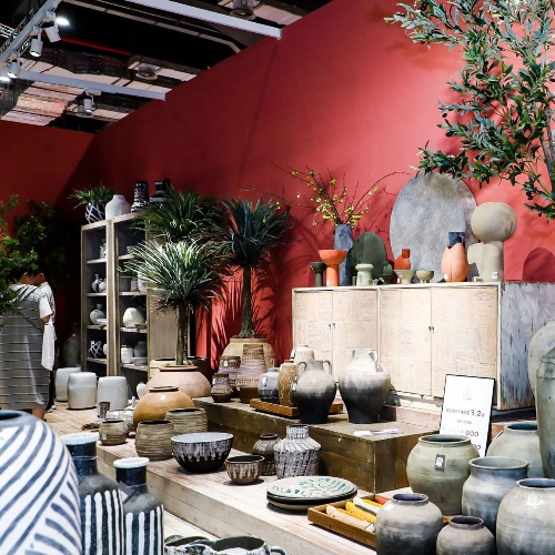 饰品家纺展区: 灯饰、装饰画、装饰器皿、日用陶瓷、相框、人造花卉、雕刻、留声机、电话、时钟、小件家具、家居装饰用布、床上用品、工艺家纺、地毯