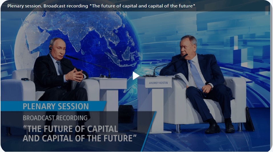 俄罗斯总统弗拉基米尔·普京将传统地在论坛的第一天出席全体会议,回答来自中国、印度、土耳其、海湾国家、非洲、中亚和东南亚等国家和地区的金融与投资界代表提问。会议主持人是俄罗斯外贸银行董事长兼首席执行官安德烈·科斯廷。