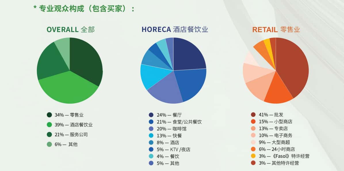 展品主题明确:按照展品类型划分主题展区,便于更加精准的供采匹配;展品主题涵盖食品和非食品,涉及零售、酒店、餐厅及咖啡馆等上下游各领域。