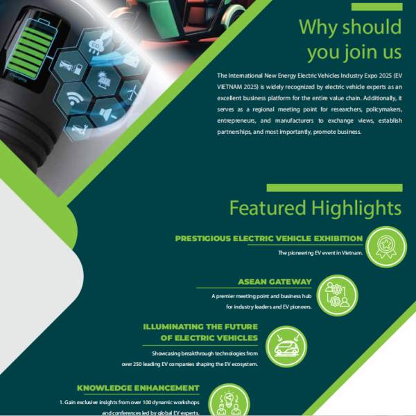 EV VIETNAM 将全面覆盖新能源电动车及充电桩技术的整个产业链,集中展示行业前沿技术成果与最新产品,加速技术创新与应用推广,为参展企业提供展示创新成就、促进商务交流与交易的机会,从而引领行业技术应用的未来趋势。此外,博览会还将通过搭建参展商与越南本土业界买家及商家的精准对接服务,有效促进产品、技术的市场推广与合作落地。