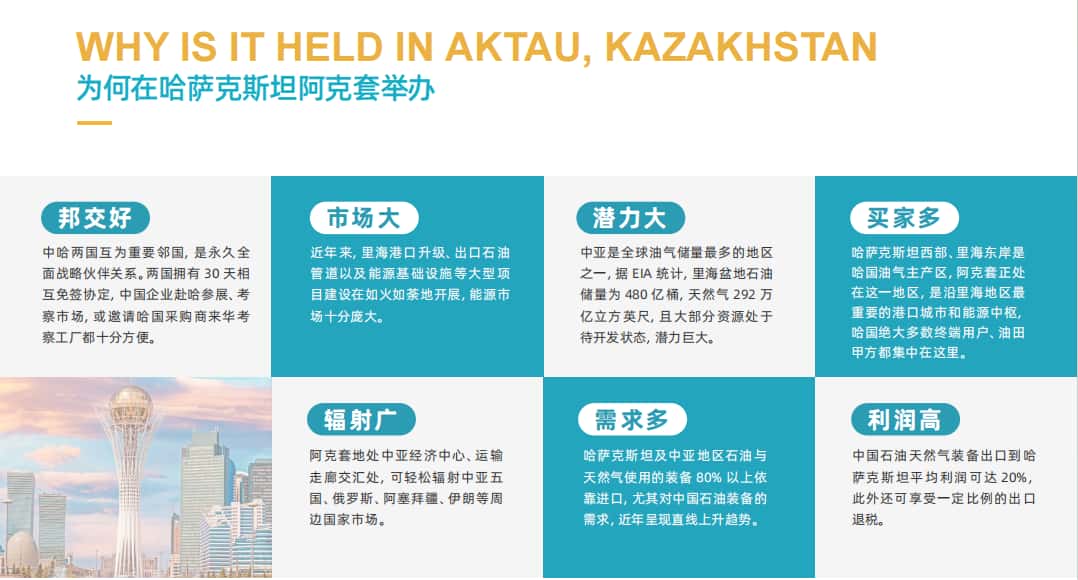 - 举办展馆:哈萨克斯坦·阿克套市·石油城展览中心