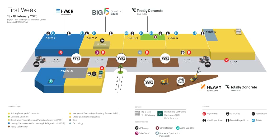 沙特阿拉伯五大行业展览会(一期) Big 5 Construct Saudi 主要展示了重型建筑、混凝土、暖通空调和设施管理的核心要素,为未来的建筑环境奠定了基础。