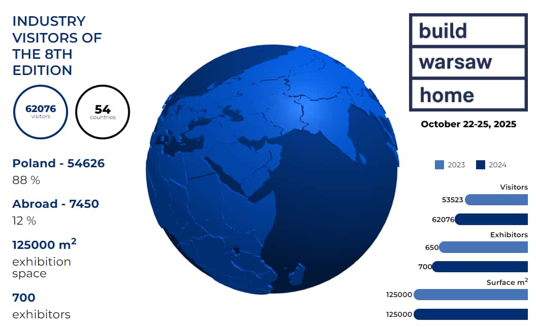 Warsaw Home Build是一个关键的行业活动,展示地板、墙壁、天花板、门、窗户、楼梯、屋顶、壁炉和外部装饰。发现建筑材料、整理化学品、通风系统、桑拿浴室、游泳池和创新解决方案,增强现代建筑的功能和美学。