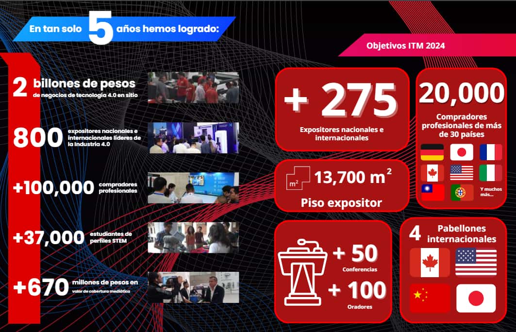 “墨西哥工业展览会(ITM)”活动将领先的工业技术与解决方案,与一流的教育和交流计划相结合。来自墨西哥及周边国家的参观者如今只需参加这一项活动,就能获取工厂数字化所需的所有工具和信息。“墨西哥工业转型”活动将是一场引人入胜且包容的盛会,利益相关者和目标受众群体将齐聚于此,寻求交流与知识转移的机会,以实现商业成功。