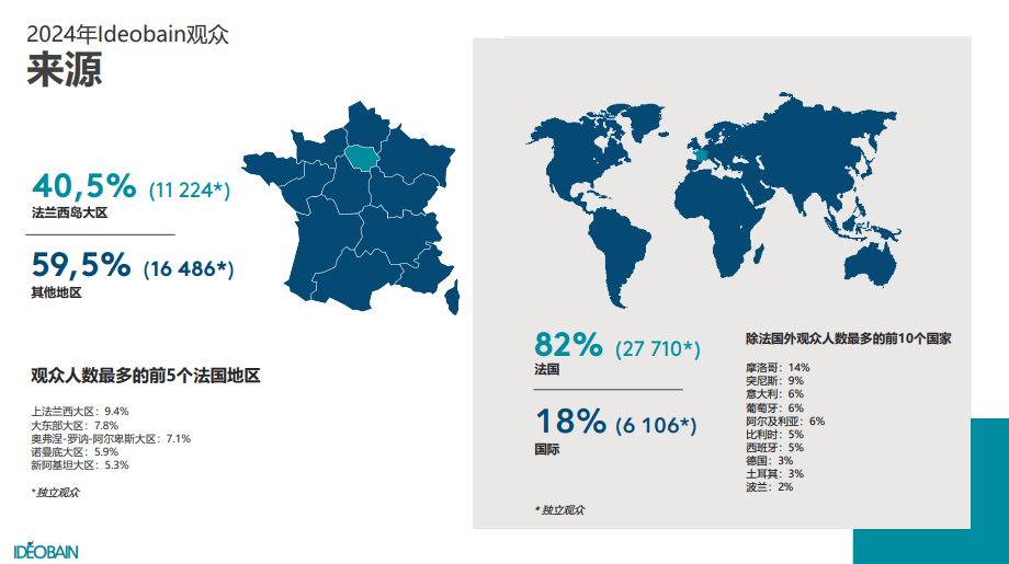 - 观众:36,877人(82%法国观众;18%国际观众)