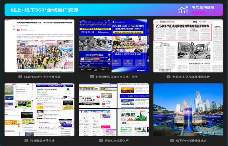 最全推广与最大流量:360°全域推广,线上线下预计曝光3000万+;与跨境电商最大流量平台AMZ123强强联合,锁定入口。