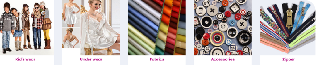 各类服饰: 女装,男装,婴童装,运动服,牛仔服,内衣,泳装,皮革皮毛制品,