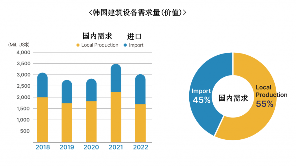 请在制造和进口完全均衡的韩国建设装备市场创造新的事业。