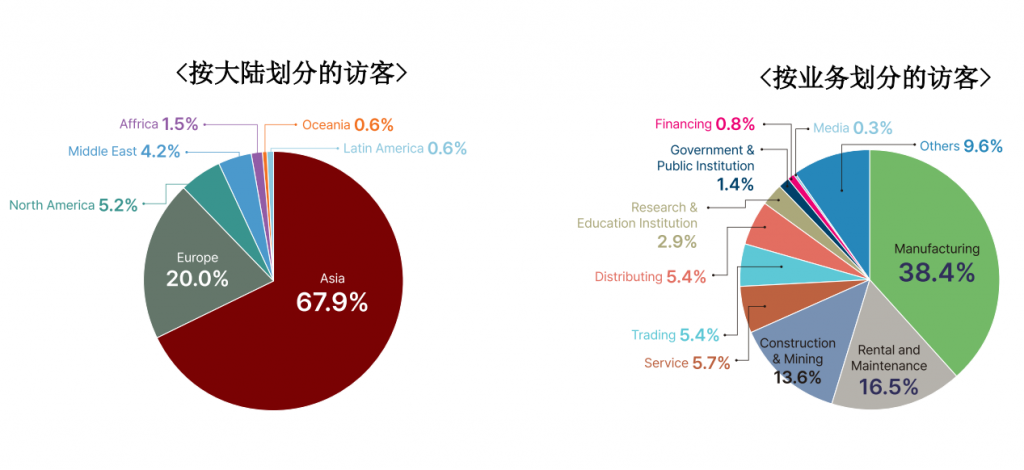 2021年展会回顾:2021年韩国首尔国际工程机械展出展面积达21,574平方米,吸引了来自13个国家的162家企业热情参与,其中,韩国本土的有91家企业;来自海外的71家企业,他们带来了各国工程机械的精华与风采。展会共吸引了12,886位访客。