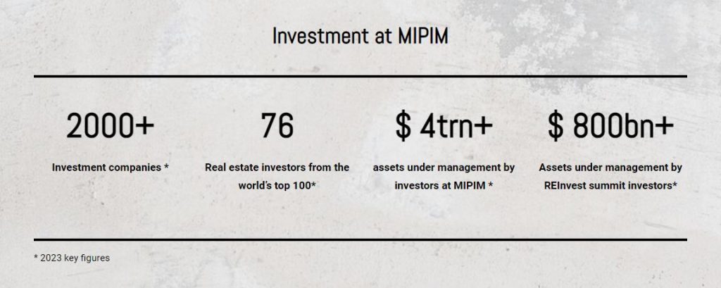法国国际房地产展览会Mipim是由英国励展博览集团reed exhibitions主办的,是法国MIPIM房地产展会的系列展会。MIPIM是每年一度的房地产盛会,引起了全世界房地产业的广泛关注。Mipim汇聚了全球规模最大、最知名的房地产投资者、地产开发商和政府领导人,成为房地产行业高层决策者的盛会,也是政府机构吸引投资的的宣传平台。