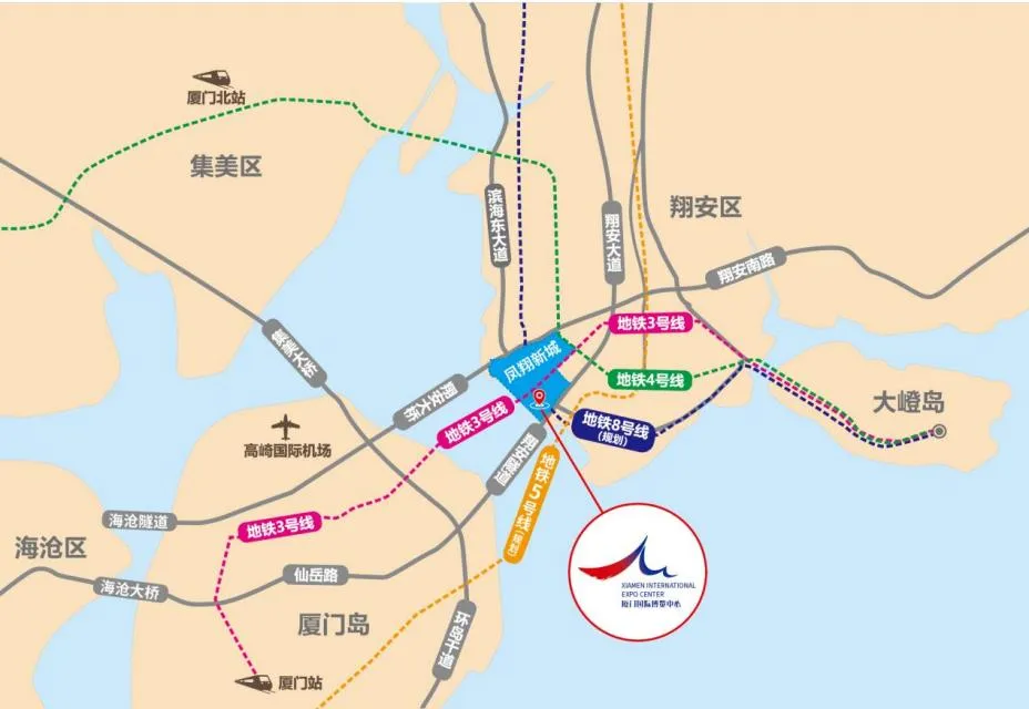 展馆距离厦门高崎机场约12公里,导航至“厦门国际博览中心”即可抵达展馆。