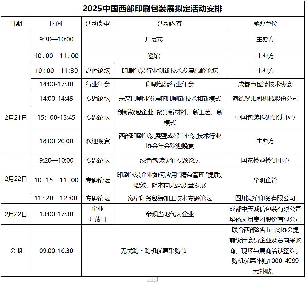 Western China (Chengdu) International Printing and Packaging Industry Expo2025- 举办时间:2025年2月21日-23日