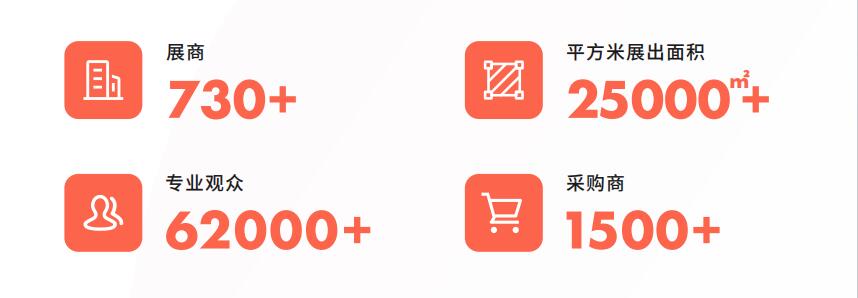 展会规模:展商730+ 展出面积25000㎡ 专业观众62000+ 采购商1500+
