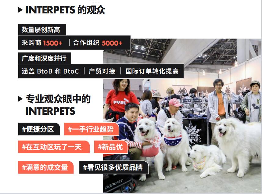 这是一场人们与宠物一起享受的生活方式型宠物活动,人与宠物一同沉 浸欢乐氛围,共同享受特殊的生活方式。 在这场展览中,我们精心策划了丰富多彩的环节,旨在通过演示让观众深 度体验各类产品和服务对于提升宠物生活质量的重要性。 同时也举办了各类行业讲座,以此让人们更加深入地了解和关爱宠物。 此外,我们还邀请了众多宠物行业的专家和品牌代表,为观众带来最前沿 的宠物产品咨询和服务介绍。 无论是宠物食品、用品还是医疗保健,都能在这里找到最优质的选择。 这不仅是一场宠业公司的展览,更是一个让宠物生活更加美好的起点。
