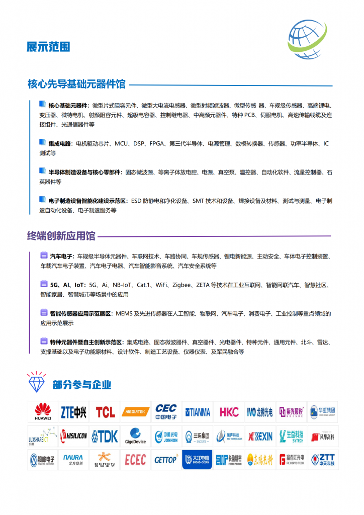 特种元器件暨自主创新示范区:集成电路、固态微波器件、真空器件、光电器件、特种元件、通用元件、北斗、雷达、支撑基础以及电子功能原材料、设计软件、制造工艺设备、仪器仪表、及军民融合等