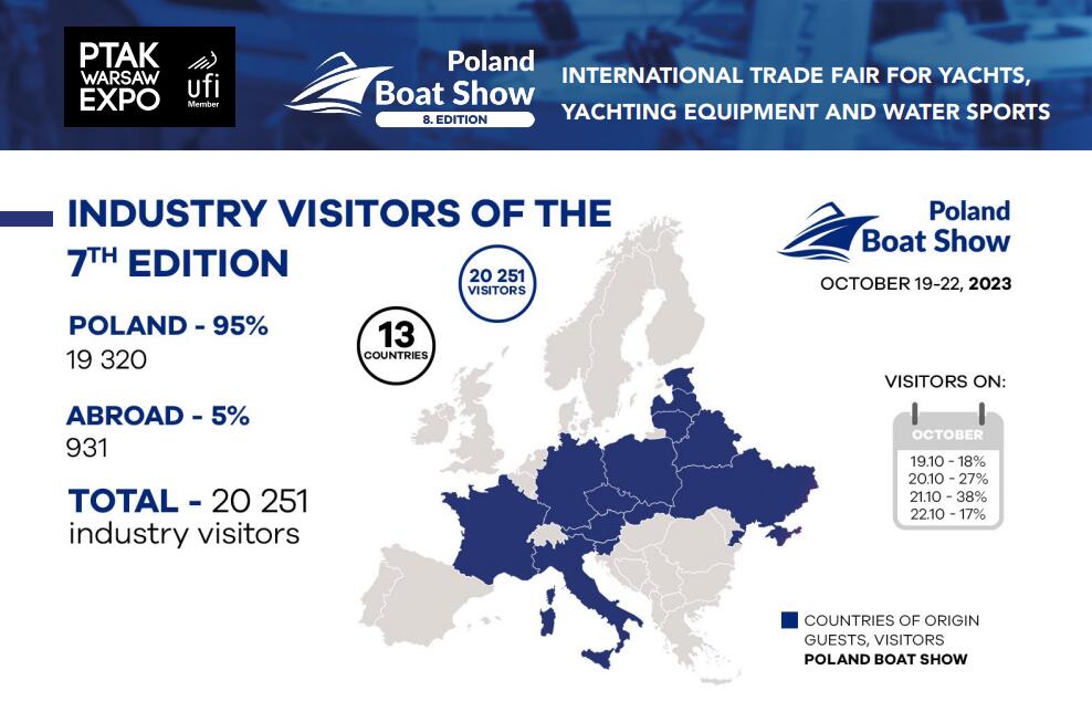 上届2023年波兰游艇展展会吸引了来自13个国家展商和专业观众,到访观众达20251名。