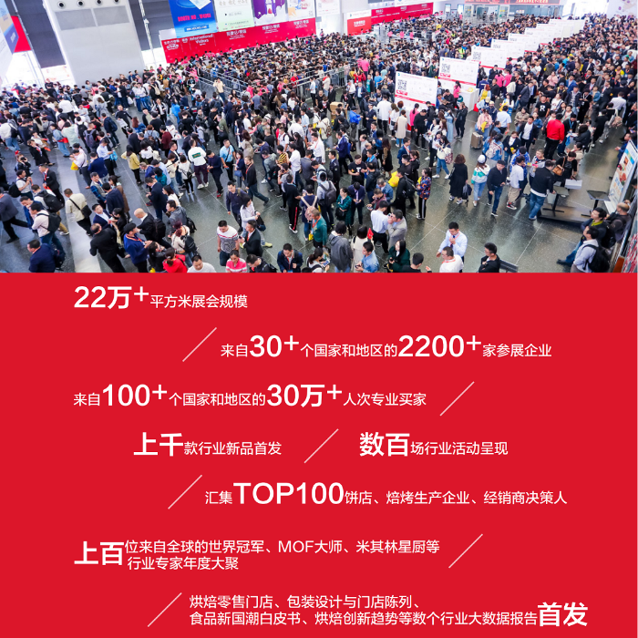 始终站在行业前沿,Bakery China精心构建了一个集行业动态反映、需求精准对接、趋势深刻洞察、消费潮流捕捉于一体的综合性商贸交流平台。即将举行的展会,其规模空前,总面积突破32万平方米,汇聚了来自全球近30个国家和地区的2276家顶尖品牌企业,携万余款创新产品璀璨登场,预计吸引跨越130多个国家和地区的逾40万专业观众共襄盛举,共谋烘焙产业新未来。