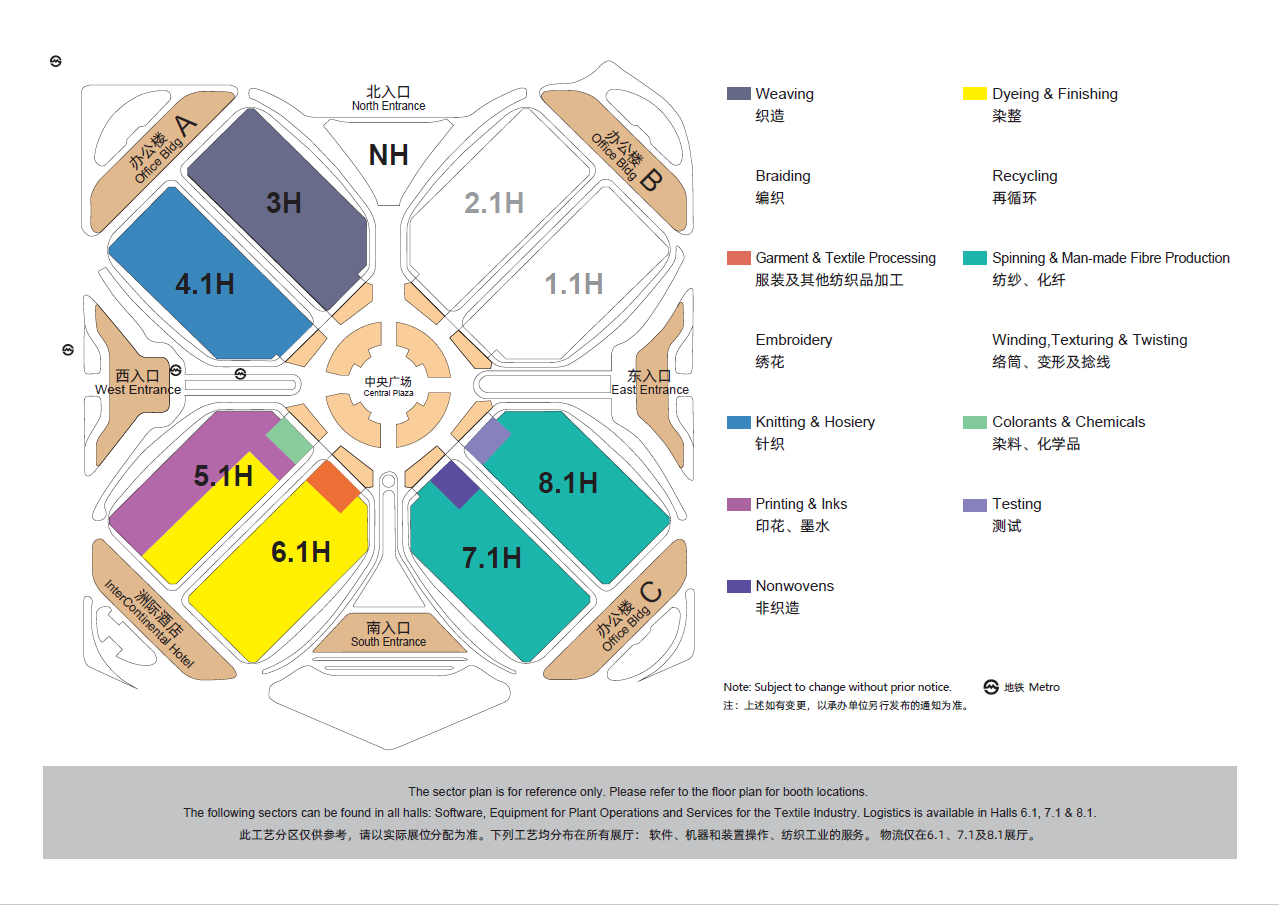 本届国际纺织机械展启用国家会展中心(上海)3、4.1、5.1、6.1、7.1、8.1共6个展馆,展出面积16万平方米,来自全球22个国家和地区近1700家顶尖纺织机械制造商,全面展示行业最新技术成果、创新产品和行业发展趋势。